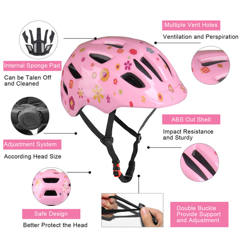 The kids bike helmets equipped with adjustable straps and spin dial to ensure you achieve a better fit.The spin dial on the back of helmet and chin straps can be adjustable according to your kid’s head circumference.The quick-release clip keeps the helmet securely in place without risk of face scratches or abrasions.