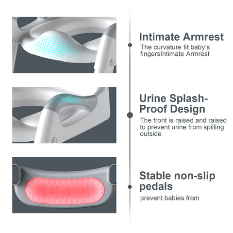 Our potty training seat has an embracing backrest design to protect your baby's spine. Anti-splash urine design prevents baby from urinating.