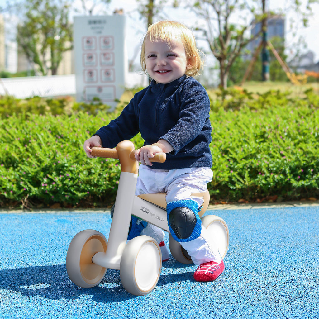XJD Baby Balance Bike, 4 Wheels for Toddlers as A Birthday Gift - White Brown