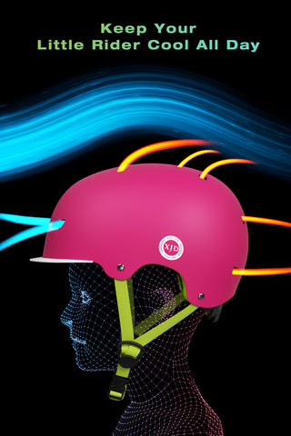 XJD kids bike helmet equipped with 11 small air vents that will keep your little rider comfortable of exercise, reduce sweating. The button closure is easy to open and close. It's covered in soft velcro padding that's comfortable for little chins
